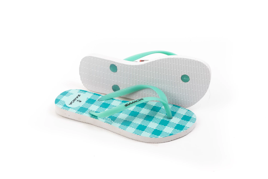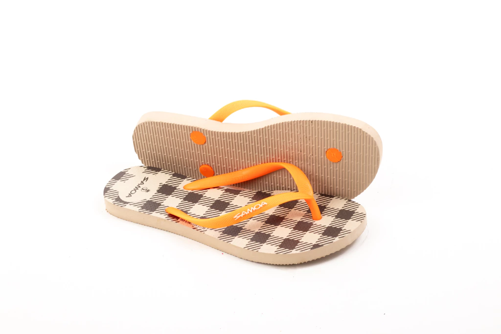 Solado 100% borracha, correia em PVC, logo pintado em serigrafia, estampa silkada em serigrafia.