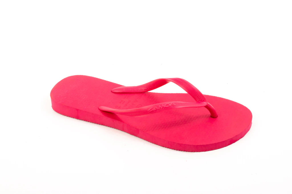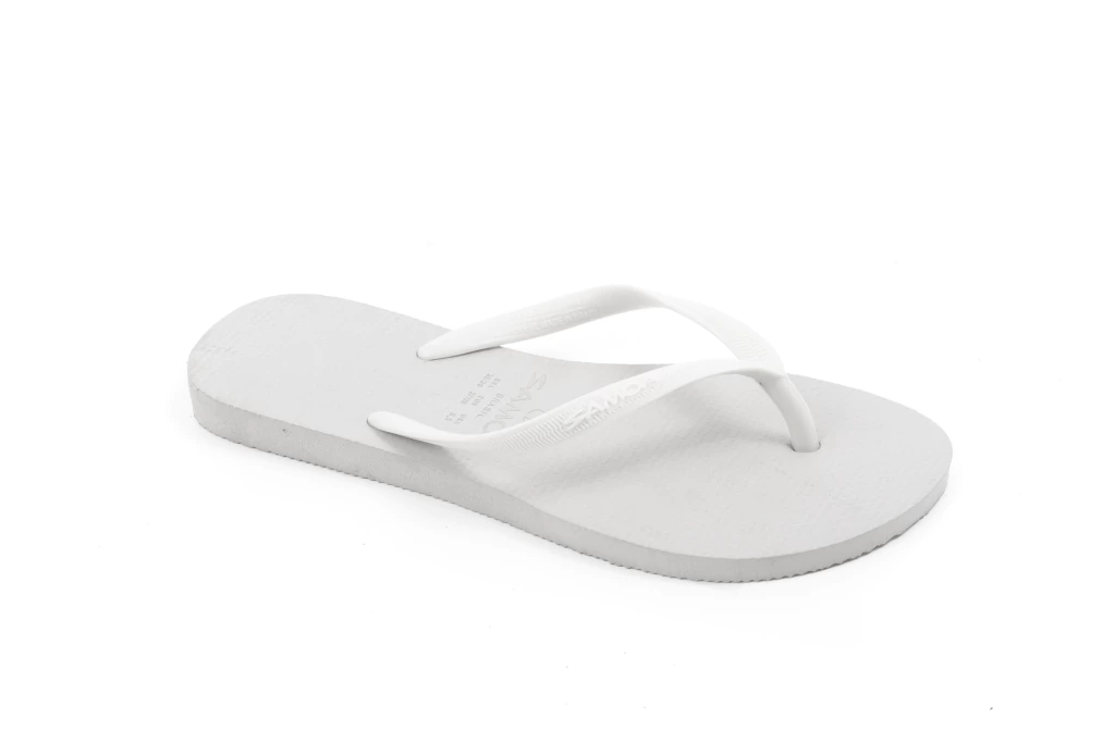 Solado 100% borracha, correia em PVC, logo em relevo.